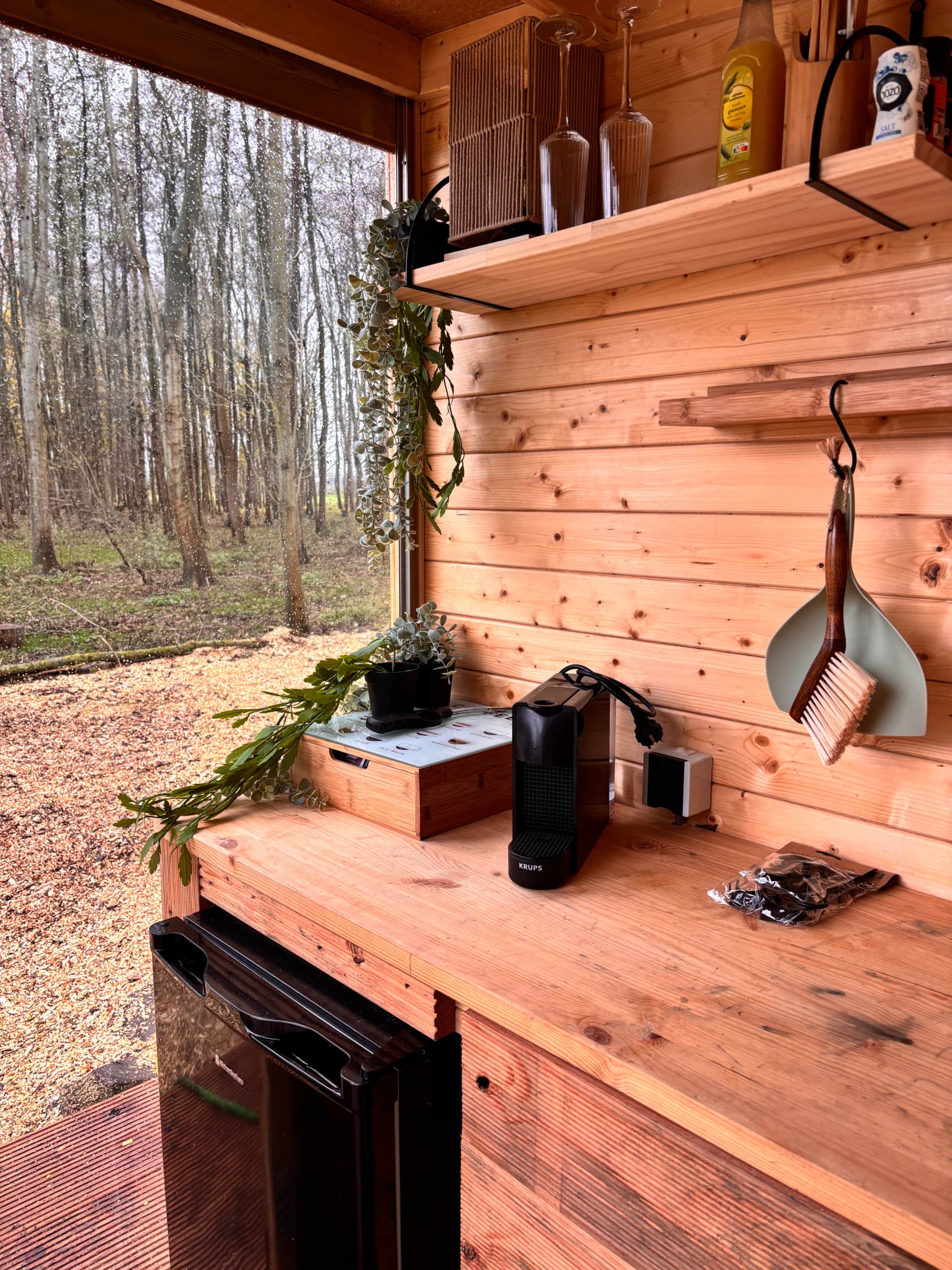 Ervaar de rust van buiten zijn, met de luxe van binnen: een warme douche onder een glazen dak, een eigen hottub, een sfeervolle keuken en een comfortabel bed.